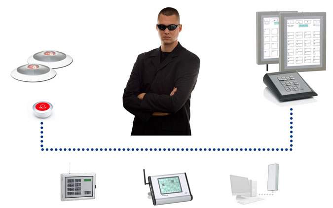 Mit Funk-Ruf-Knöpfen an Bars oder Theken kann bei Bedarf sofort das Aufsichts- oder Sicherheitspersonal benachrichtigt werden.